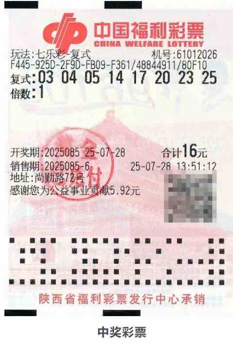7月28日,福彩七乐彩第2025085期开奖,全国开出2注一等奖,单注195万元。其中一注,花落西安市新城区,韩先生(化名)凭借一张主玩法8码复式自选票,中得一等奖1注、三等奖7注,收获总奖金196万元。