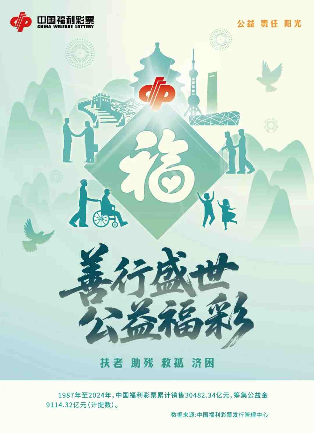 1987年至2024年,中国福利彩票累计销售30482.34亿元,筹集公益金9114.32亿元(计提数)。