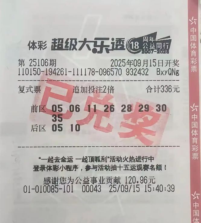 大乐透第25106期开奖结束后,内蒙古彩友独中一等奖2注与追加一等奖2注,并且全部出自一张8+2的复式票,单票总奖金高达2700万。目前,这位来自内蒙古的彩民,已经火速办理了兑奖手续,领走了属于他的千万级别大奖。从出票时间来看,是开奖当日下午15点40分39秒,这个时间也挺早啊!总之,这位中奖者简直是运气爆棚啊!