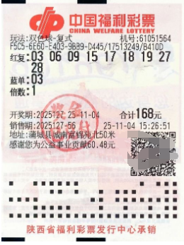 11月4日,双色球第2025127期开奖,全国共中出8注一等奖,其中一注由渭南市蒲城县福彩第61051564号投注站售出,奖金达到699万余元。这张大奖彩票是由一群彩民共同参与的9+1复式合买票组成。