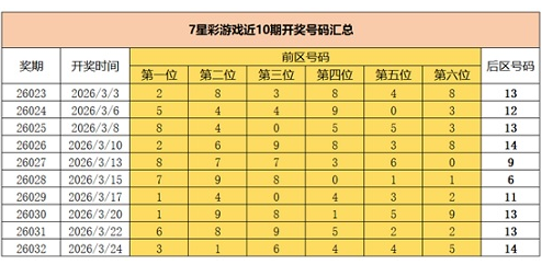 2026年3月24日晚,中国体育彩票7星彩第26032期开奖,当期开奖号码为前区“3 1 6 4 4 5”,后区“14”。