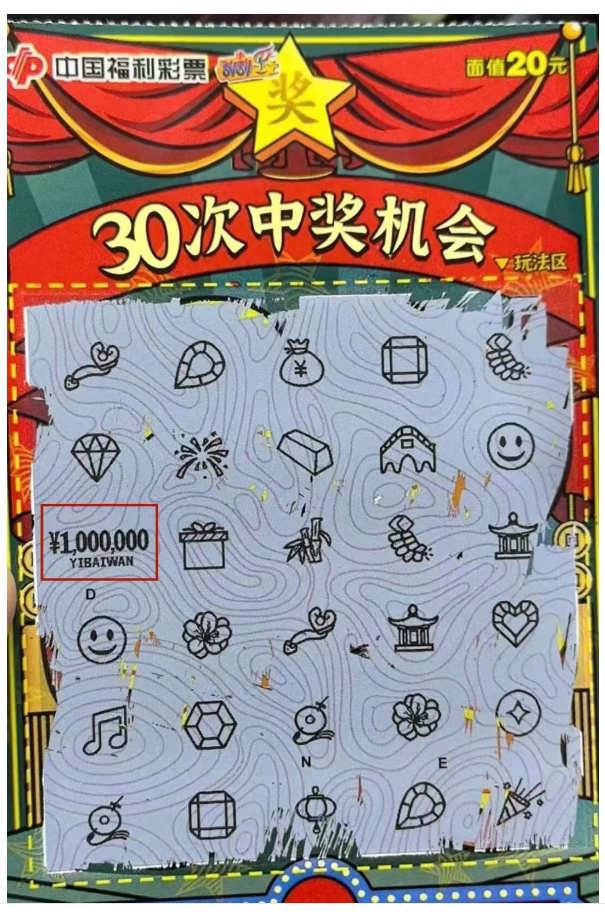 这款刮刮乐游戏“奖”的单张面值为20元,提供30次中奖机会,最高奖金可达100万元,玩法简单直接——只需刮开覆盖膜,如果刮出任意金额的奖金即可获得相应的奖金;同时,若刮出“中”图符则可获60元奖金,刮出“赢”图符则可获100元奖金,中奖奖金可以兼中兼得。