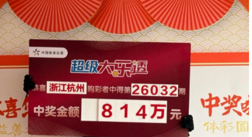 3月28日,体彩大乐透第26032期开奖,当期全国中出6注一等奖,单注奖金814万元。本期杭州购彩者喜中1注一等奖,单票奖金814万元。3月30日,中奖者何女士(化姓)在家人的陪同下到浙江省体育彩票管理中心领取了大奖。