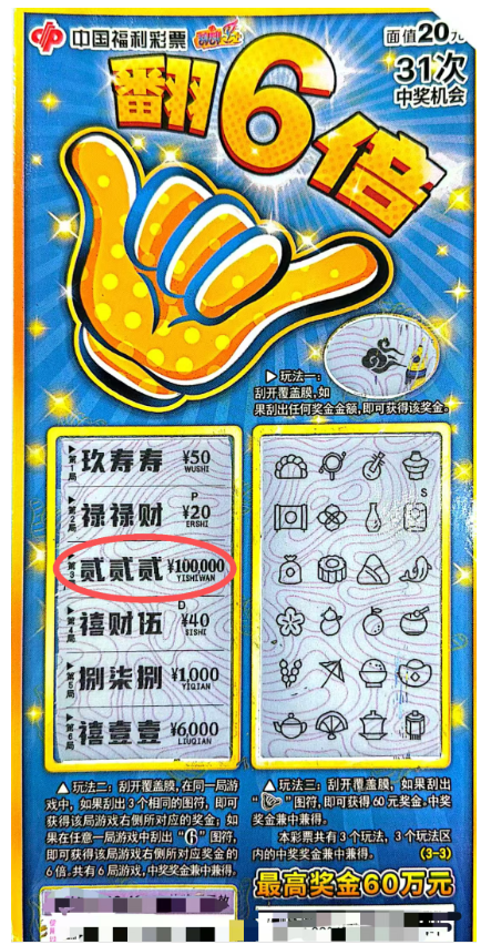 长春高新区彩民刮中“翻6倍”10万元大奖