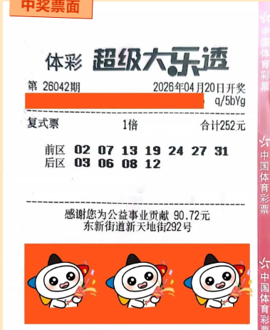 4月20日,体彩大乐透第26042期开奖,浙江杭州中出1注一等奖,单票总奖金达到799万元。次日,即4月21日,中奖者龚先生(化姓)来到浙江省体育彩票管理中心,正式领走了大奖。