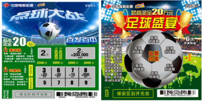2010年,“百发百中-点球大战”刮刮乐的玩法,“我猜的球数”与“比赛结果”球数相同,即可获得相对应的奖金;2014年则沿用了“百发百中─点球大战”的玩法。这两款刮刮乐并没有改变即开票的传统玩法,依然采用刮开覆盖涂层,校对数字或图案的方法来验证获奖。