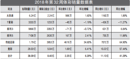 当周竞猜型游戏销售29.82亿元,筹集公益金5.44亿元。当周销量比上周增加2.15亿元,环比增长7.77%;比去年同期增加10.93亿元,同比增长57.87%。