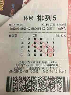 中奖彩票之一体彩排列5第18188期开奖号码为“0 、6 、8、 1、 1”,全国共中出29注一等奖,其中盐城阜宁59493体彩网点的购彩者小刘一举中得12注,奖金总计120万元。