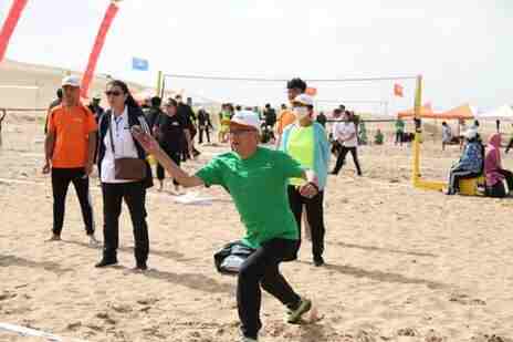 激情、愉悦、积极向上的内蒙古体彩系统盛会,汇集了由来自全区14个盟市体育彩票业主、购彩者、工作人员所组成的15支代表队,共近500人,代表队将在运动会中参加沙漠五人制足球、沙漠五人制排球、沙漠五人制打沙包、30米拉沙舟、五公里沙漠徒步、羽毛球混合团体赛、乒乓球团体赛、电子竞技、布鲁打准、沙漠跳绳等项目。