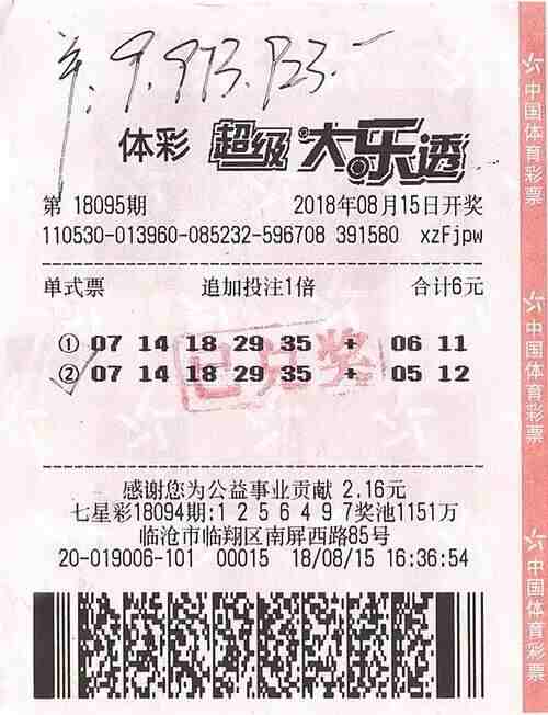 8月15日晚,体彩大乐透第18095期开奖,云南临沧一购彩者凭借一张单式两注追加票擒获997万余元。8月20日下午,购彩者杨先生(化姓)在家人的陪同下现身云南省体彩中心领走了这笔奖金。