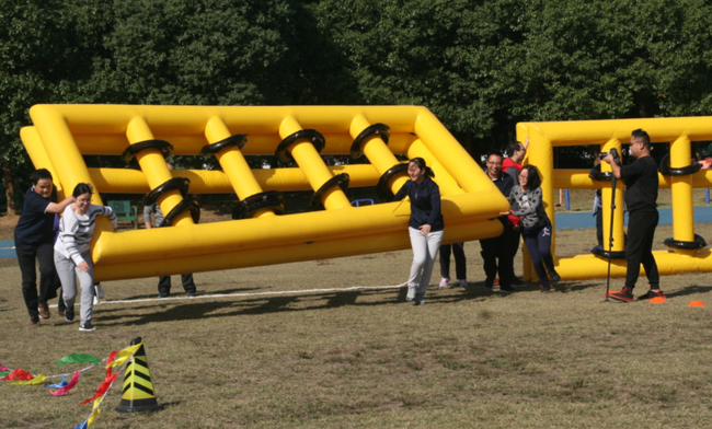 与前两届运动会稍有不同的是,今年的比赛项目更注重趣味性以及团队合作。在“铁甲战车”比赛中,既有协力推车的队员,也有快速转移“车轮”的队员,大家要在保证乘坐人员不掉落的前提下,以最快的速度将战车推到终点。看似简单的游戏,在实际操作过程中却状况百出,有的还甚至出现人仰马翻的场景,观众们则一边加油助威,一边用手机拍下同事们的各种“丑态”,在微信朋友圈让更多人分享。