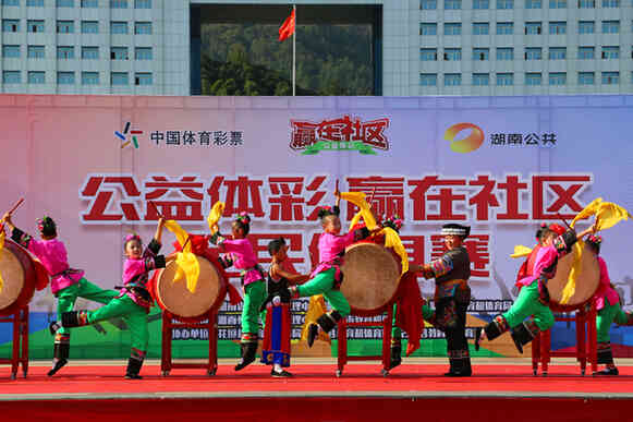 正式开始的“公益体彩 赢在社区”活动不仅有社区对抗赛、个人挑战赛,还有社区文艺会演,通过网上直播,让现场群众和众多线上观众享受了一场“文体盛宴”。活力四射的热身操、热情激昂的湘西苗族鼓舞等点燃全场,社区代表队队员参加趣味体育游戏更是全力以赴,掀起全民健身热潮。