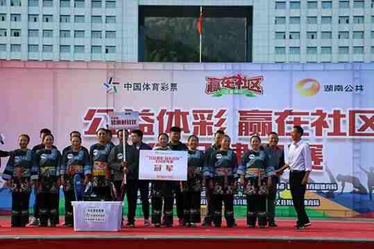 最终吉首市矮寨村社区代表队、吉首市雅溪社区代表队、古丈县古丈坪社区代表队分别获得冠、亚、季军,获赠了丰厚的体育用品大礼包,其他参赛社区也获赠了篮球、足球、气排球、乒乓球拍、羽毛球拍、象棋、飞行棋、跳棋等丰富多样的体育用品。最后,土家族苗族自治州湘西体彩分中心主任毛斌还为所有参赛队员赠送了体彩大乐透彩票,祝他们收获幸运。