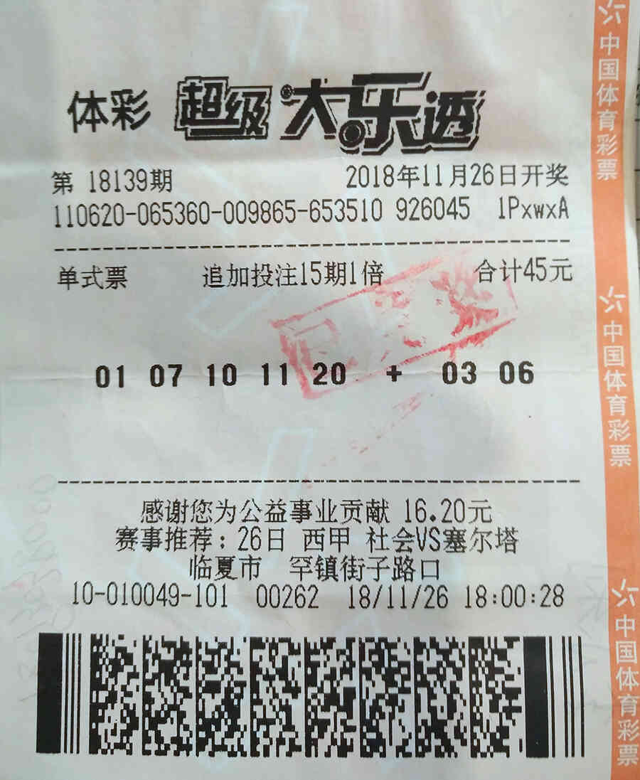 据了解,该男子“彩龄”近20年,领奖时心态平稳、语气舒缓。他说,对体育彩票的各种新闻都很关注,清楚买体彩就是作公益,还知道最近在甘肃最近一个月多中出3注体彩大乐透头奖,其他两位中奖彩友都是复式投注,但未追加。他的这张中奖票,号码是自己随意选出来的,做了15期的多期投注。当晚11点多,他从手机上核对后发现自己中奖了,刚开始不敢相信,经过反复核对确认中奖后,“心砰砰直跳”。