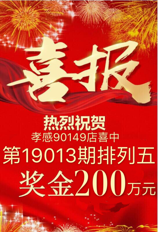 (特区小编资讯)1月14日,腊月初八,体彩排列五第19013期开奖,孝感城区90149体彩销售点中得20注大奖,奖金200万元。