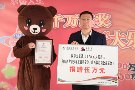 (山西省青少年发展基金会秘书长张华接受捐赠,并为中奖者颁发捐赠证书)