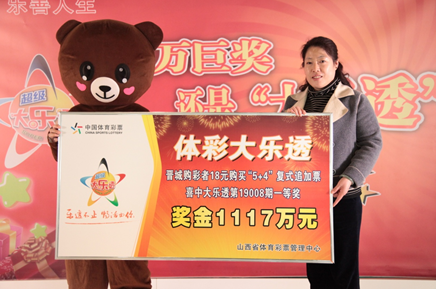 (特区小编资讯)1月19日晚,体彩大乐透 第19008期前区开出号码03、08、17、20、24;后区开出号码06、11,我省晋城购彩者凭借一张“5+4”复式追加票喜中该期一等奖追加1注、二等奖追加4注及若干小奖,单票累计收获1117万元。该奖出自位于晋城市城区凤台西街的1405021008号体彩投注站。