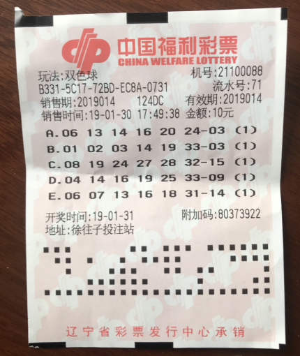 1月31日,中国福利彩票双色球游戏进行第2019014期开奖,当期双色球红球号码为01、02、03、14、19、33,蓝球号码为03。我省中出三注一等奖,其中一注出自辽阳市徐往子第88号投注站。彩票售出时间在1月30日17时49分,这张中奖票运用了机选5注的投注方式,除中出一等奖外还中出一注六等奖,总奖金7,683,515元。年前,这位以10元投注拔得头筹的大奖得主夫妇现身福彩中心。机选购买彩票10余年,每次只投10元。他们用坚持斩获头奖,收获到2019年春节最大红包。