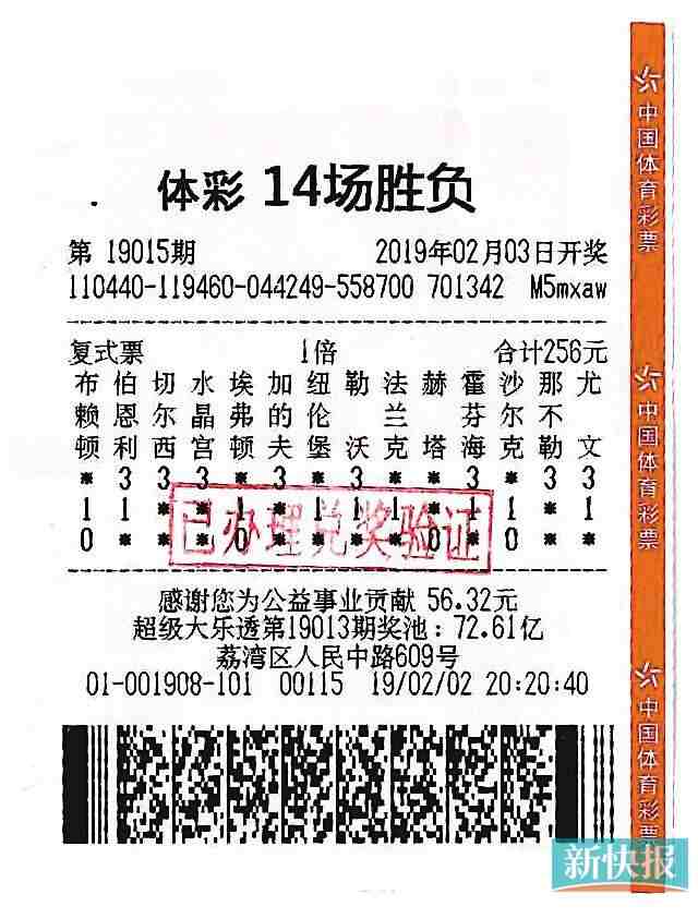 2月3日,胜负彩第19015期开奖结果揭晓,英超赛场中,切尔西5比0大胜哈德斯,德甲勒沃3比1击败拜仁,法兰克福1比1平多特,意甲尤文3比3被帕尔马逼平。当期全国仅中出1注一等奖,单注奖金500万元,二等奖也仅中出19注,单注奖金高达45.8万元。