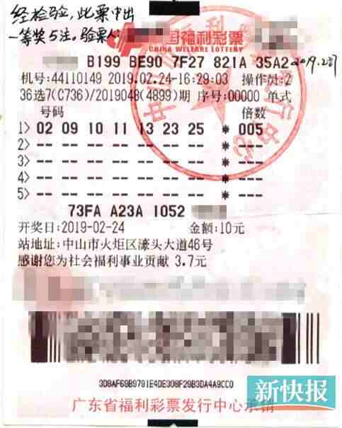 2月24日下午4点半左右,陈先生来到了中山市火炬区濠头大道46号的4411019投注站,如常机选了1注南粤风采36选7单式,号码是“02、09、10、11、13、23、25”,他进行了5倍倍投,共花了10元。