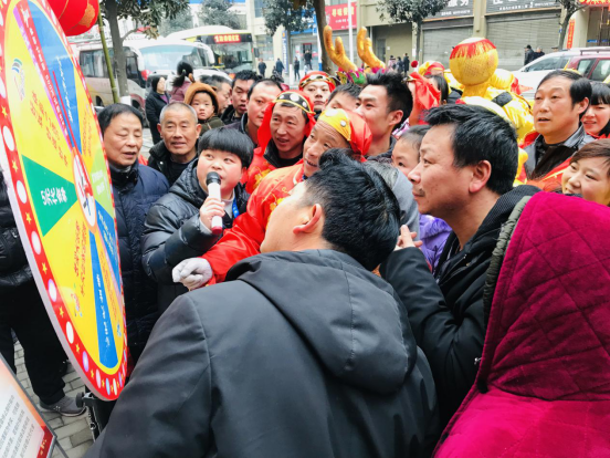当日上午9时,58578体彩销售点门口早已布置了红彤彤的彩虹门和公益展板,穿戴整齐的舞龙舞狮采莲船的演员们,轮番上场舞龙、舞狮、划采莲船,一时间好不热闹。路人们纷纷驻足观看,时不时鼓掌助威,不少人还参与“幸运大转盘”等体彩互动游戏。