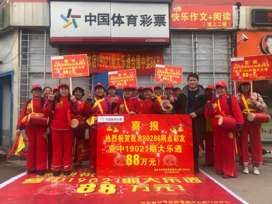 (特区小编资讯)2月25日晚,体彩大乐透第19021期开奖结果一出来,荆门80286体彩销售点一片欢腾:该彩票店336元8+3合买单喜中二等奖2注、小奖若干,奖金合计88万余元。