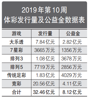 当周排列3通过1.08亿元的发行量,筹集了3678万元公益金。当周仅有1期返奖率超过53%,出自3月9日开奖的第19061期,返奖率达60%。