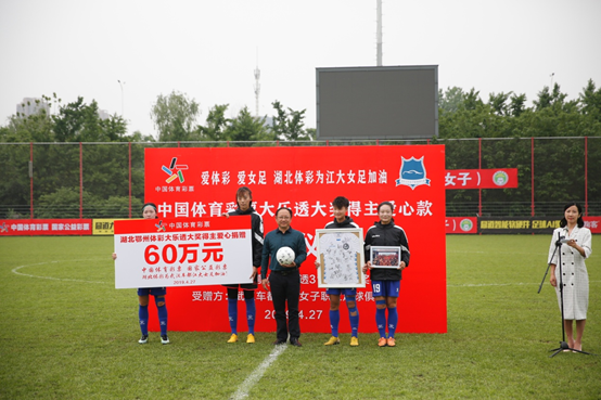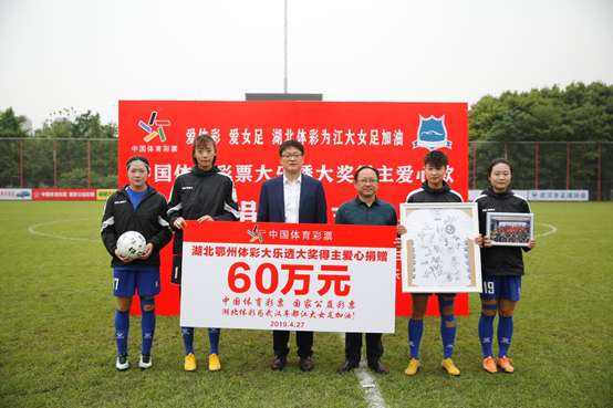 (特区小编资讯)4月27日下午,2019中国足球协会杯赛(女子)半决赛,在武汉塔子湖体育中心足球场举行。中场休息间隙,一场特别的捐赠仪式,引起了观众们的极大关注,原来是体育彩票的幸运大奖得主,向当天主场作战的江大女足捐了60万元。