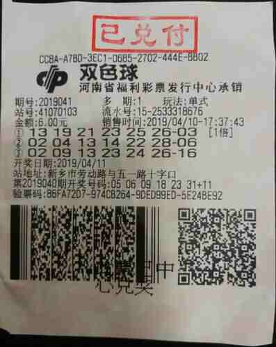 大奖得主(特区小编资讯)4月11日晚,中国福利彩票双色球游戏2019041期开奖,开出红球02、09、13、23、24、26,蓝球16.当期全国共开出一等奖两注,分落江西、河南两地,河南新乡彩民有幸中得一注,出自新乡市劳动路与五一路十字口41070103投注站,投注方式:单式,投注金额:6元,中奖金额:1000万元。