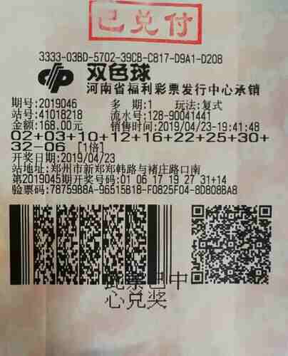 中奖得主领奖照(特区小编资讯)4月23日晚,中国福利彩票双色球游戏进行第2019046期开奖。当期双色球红球号码为02、12、16、22、25、32,蓝球号码为06。当期开出双色球头奖17注,单注奖金为584万多元。这17注一等奖花落10地,天津1注,黑龙江1注,上海5注,浙江1注,山东1注,河南3注,湖北1注,广东2注,海南1注,新疆1注,共17注。