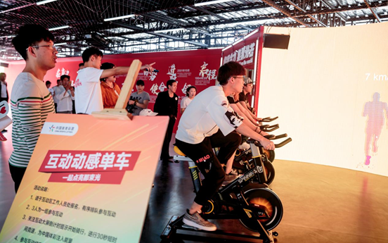 在互动单车板块,三台动感单车与电子显示屏实现“能量对接”,现场观众可以参与30秒自行车竞速骑行,速度与能量实时显示在大屏幕,合力为公益加油、为体彩添彩;互动光影艺术墙前,屏幕的“沙画”效果堪称神奇;体彩公益区则安装了太空漫步机等体彩健身路径中常见的体育器材;互动留影区的光影捕捉和特效合成技术,让观众“空降”到虚拟的场景当中,扫码即可拍照留念;产品互动区里,可以在电子屏上模拟投注和刮奖……借力高科技,有趣又暖心,现场搭建起的“时光长廊”,巧妙地将运动健身、公益爱心、产品体验、历史大事融为一体,让参与者在互动中加深对体育彩票的品牌认知,感受到身边体彩带来的快乐和美好。