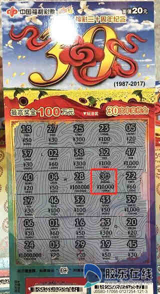 单张彩票中出最高奖金1万元