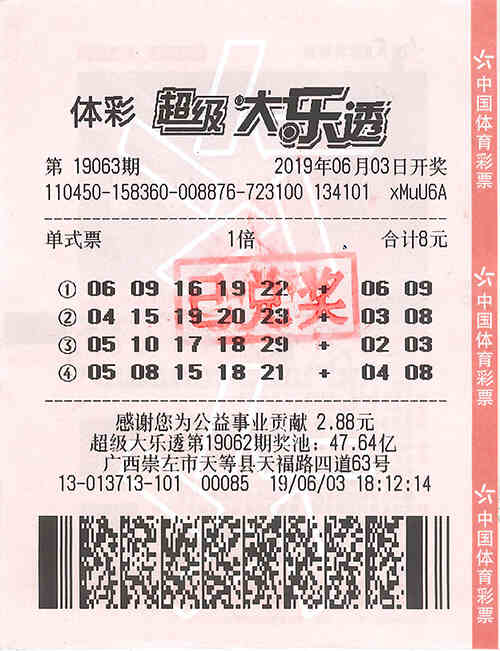 (特区小编资讯)又一注1000万元大奖花落广西!6月3日晚,体彩大乐透第19063期开奖,前区开出号码“05、08、15、18、21”,后区开出号码“04、08”。广西天等县4513013713号体彩投注站中出1注一等奖,奖金达到封顶的1000万元!