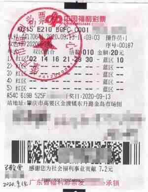 (特区小编资讯)9月13日晚,双色球送来了大大的惊喜,在第2020089期开奖中,全国共开出一等奖11注,单注奖金720万元,位于肇庆市高要区金渡镇东升路金岛市场侧的44170641福彩销售站包揽其中10注一等奖,中奖票面是一张价值20元进行10倍投注的单式机选票。