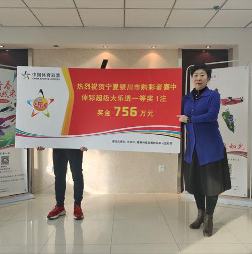 12月11日,银川市中得体彩大乐透20123期756万元大奖得主,现身宁夏体彩中心兑奖。宁夏体育彩票管理中心主任祁春霞为其颁奖。