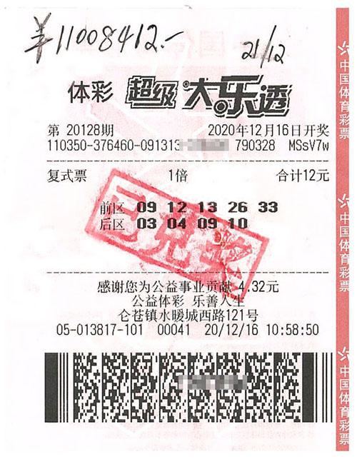 12月16日晚,体彩大乐透第20128期开奖,泉州南安市仑苍镇水暖城西路121号13817实体店一购彩者凭借复式投注中得一等奖1注、二等奖4注、三等奖1注,奖金合计1100.84万元。