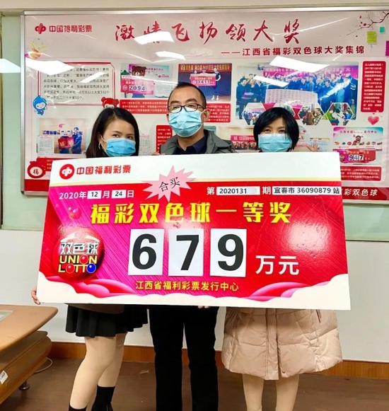 12月24日,江西福彩双色球双喜临门,南昌和宜春丰城市彩民各中出600多万元大奖。次日,丰城合买团在站点业主朱德平的带领下,齐聚江西省福彩中心兑领奖金679万元(税前)。