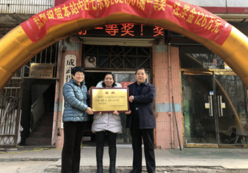 1月5日上午,菏泽市福彩中心工作人员一行,来到成武县供电局对过的这家中奖福彩站,为福彩站颁发了喜报奖牌!中奖福彩站门口拉起了喜庆的彩虹门和条幅,周边的彩友得知中出大奖也纷纷来沾沾喜气,买上几注福彩!