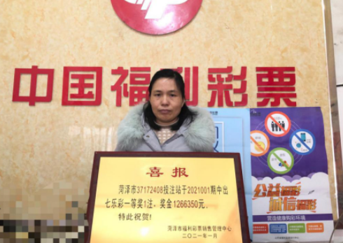 据检索,这注一等奖出自一张投注额6元的自选单式票,中奖彩票中得1注一等奖和1注七等奖,奖金合计1266355元。中奖彩票诞生在菏泽市成武县供电局对过37172408号销售网点。