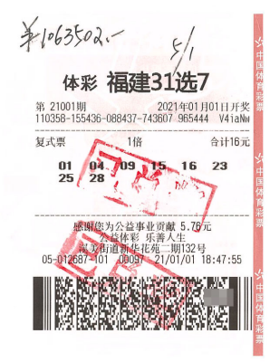 1月1日,31选7第21001期开奖,泉州南安市溪美街道新华花苑二期132号的12687实体店购彩者刘先生,凭借一张投注金额仅16元的复式票,中奖106.35万元。