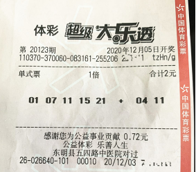通过中奖彩票我们看到,这是一张1注号码、2元投入的大乐透单式票,擒获奖金7,560,029元。