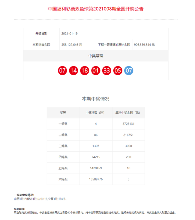 北京时间2021年1月19日,福彩双色球第21008期开奖,以下是详细开奖流程: