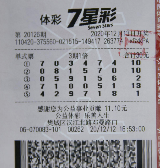 王先生递给工作人员的是一张单式5注3期的7星彩彩票,出自樊城区江汉北路70083体彩销售点。该张彩票的第5注号码“4297181”与体彩7星彩第20128期开奖号码一致,中奖500万元。