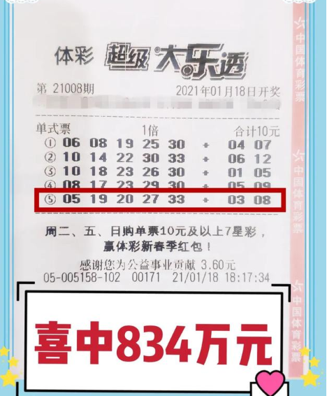 据了解,此次中得大奖的是一个年轻小伙,买彩票只当是业余兴趣,心情好的时候就买几注号码碰碰运气,并不是每期都买,一次投入都是20以内。