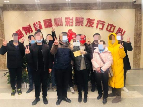 1月26日开奖后,彩民们就在微信群公布的中奖喜讯。1月27日上午9点湖南省福利彩票发行中心兑奖室迎来了合买团中奖彩民们,对于此次中奖,中奖彩民们都表示非常开心!