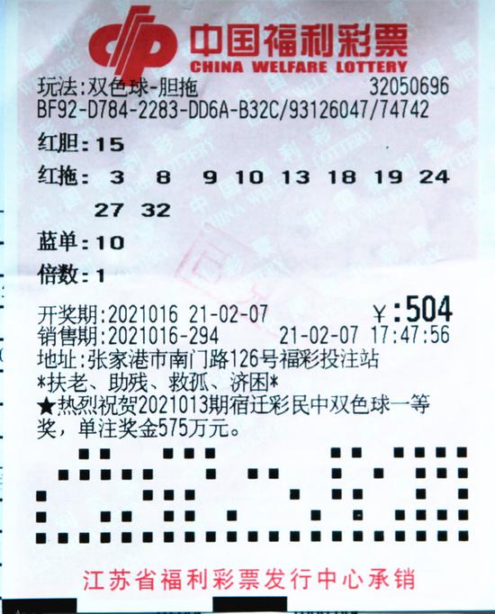 我省当期喜中的一等奖来自于苏州市,幸运站点是张家港市南门路126号、编号32050696福彩投注站,出票时间为2月7日17时47分56秒,幸运彩民采用胆拖投注方式,选择了1胆码+10拖码,总共花费504元,除了中出的1注一等奖外,还中出三等奖25注、四等奖100注、五等奖100注、六等奖26注,总计收获奖金623万多元。