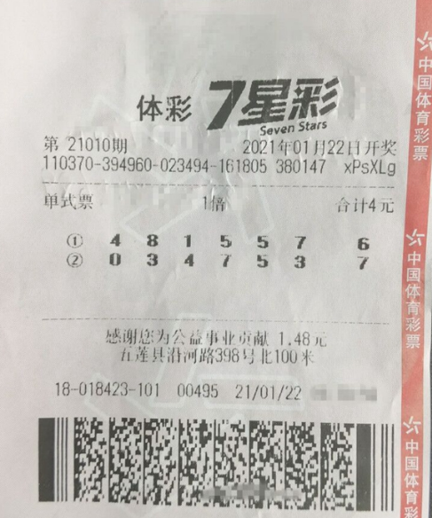 大奖往往可遇而不可求,有的人每天精心研究号码也不一定中奖,可有的人随随便便机选投注,却有可能被幸运大奖砸中。日照购彩者老李(化姓)就属于后者,2021年1月22日他凭借一张4元的机选票喜中7星彩一等奖500万元,这也是2021年以来山东省所中出的第一注500万大奖。