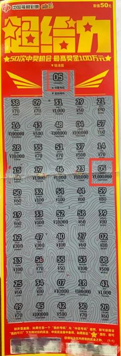 刚开始刮开中奖号码为“05”,往下刮有50个“我的号码”,按规则,只要“中奖号码”与“我的号码”相同,就可以获得“我的号码”下方对应的奖金。徐先生不紧不慢地往下刮开一个个“我的号码”,同时心中默念着“05”,没想到刮开第20个号码时,令人惊讶的一幕发生了!第20个号码刮开竟然真的是“05”,号码下方对应奖金高达100万元!
