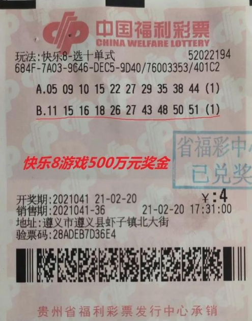 2月20日晚,快乐8游戏第2021041期开奖,当期贵州彩民再获幸运,喜获选十头奖,奖金500万元,这是我省彩民收获的第2注500万元大奖。2月22日下午,中奖者现身贵州省福利彩票发行中心兑奖,顺利兑取500万元奖金。