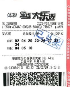 2月20日,体彩大乐透第21018期,前区开出号码02、20、23、26、34;后区开出号码05、10。这是牛年的第一期大乐透开奖,四川德阳一购彩者凭借一张8+3复式追加票,单票擒奖1868万元。